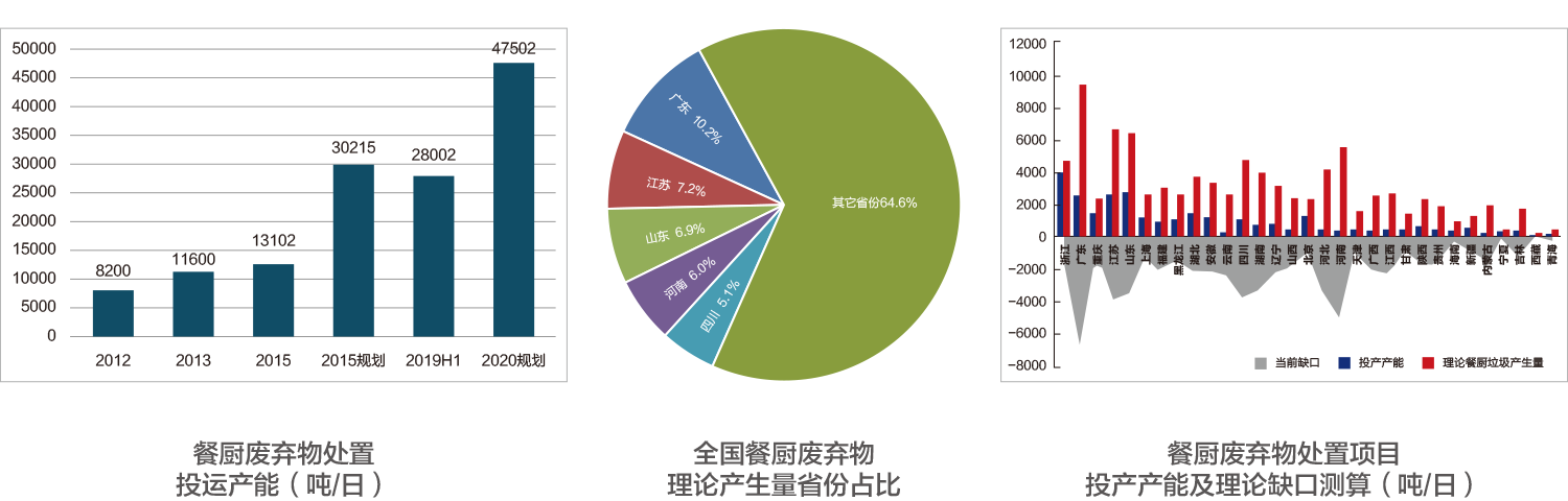 餐廚廢棄物處置產(chǎn)能缺口,以目前各省份投運產(chǎn)能和理論餐廚廢棄物產(chǎn)生量數(shù)據(jù)對比來看,多數(shù)省份的餐廚廢棄物處理能力不足,缺口明顯。全國總?cè)笨诩s6.36萬噸/日。其中經(jīng)濟發(fā)達、人口眾多、餐飲市場活躍的廣東(6832t/d)、河南(5214t/d)、江蘇(3955t/d)、山東(3613t/d)理論缺口較大。