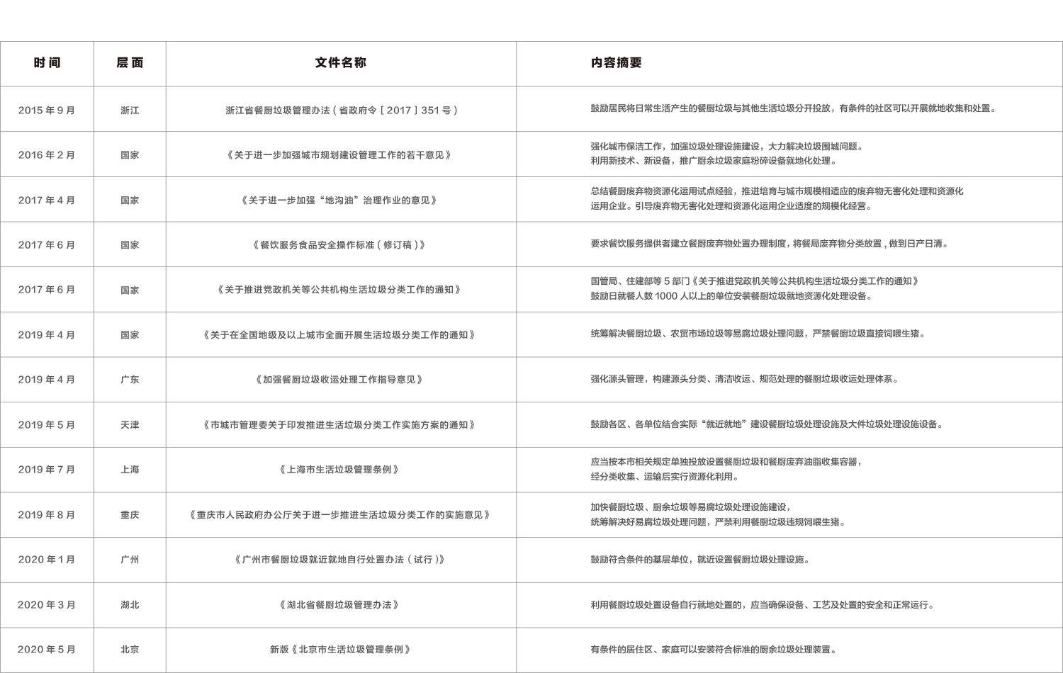 國家宏觀政策和產(chǎn)業(yè)政策的走向直接影響垃圾處理業(yè)的發(fā)展方向,近年來國家及地方出臺了一系列關(guān)于垃圾處理業(yè)發(fā)展的政策。